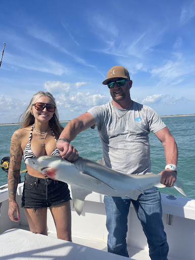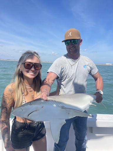 Most of the trip was spent simply soaking in the sun and the peacefulness of the ocean. Then, out of nowhere, we got a bite—and it was a big one! My fiancé spent about ten intense minutes reeling in this monster, with Captain Joe coaching him every step of the way, only stepping in when absolutely necessary so the catch would be all his. When the Sand Tiger Shark finally surfaced, it was a breathtaking moment—one we’ll never forget.